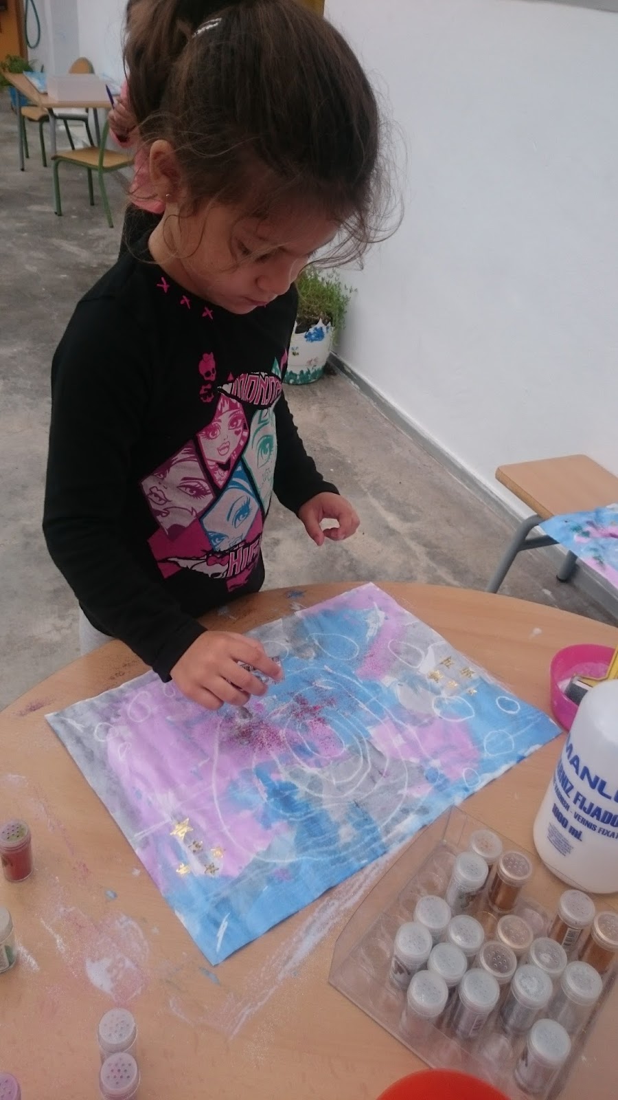HEM INVESTIGAT ALS LLIBRES QUE TENIM I HEM VIST QUE LES GALÀXIES PODEN TENIR DIFERENTS FORMES, I HEM JUGAT A DIBUIXAR-LES ENTERRA AMB GUIXOS, A FER-LES AMB PLASTIILINA... I DESPRÉS, APROFITANT LA FORMA D'ESPIRAL, HEM FET UN TALLER DE GRAFISME AMB AQUESTA FIGURA I HEM DIBUIXAT UNA GALÀXIA AMB CERA BLANCA I DESPRÉS L'HEM FETA APARÈIXER PINTANT EL PAPER AMB AQUAREL·LES.